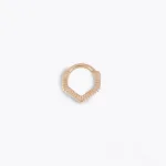 Uniform lines adorn this angular, iconic Tether pointed clicker. The Reef clicker has shell-like textured ribs that wrap all the way around the design leaving no surface forgotten. This piece is as versatile as it is striking and will make a beautiful centerpiece in a septum or a slim, accent piece along the edge of an ear.