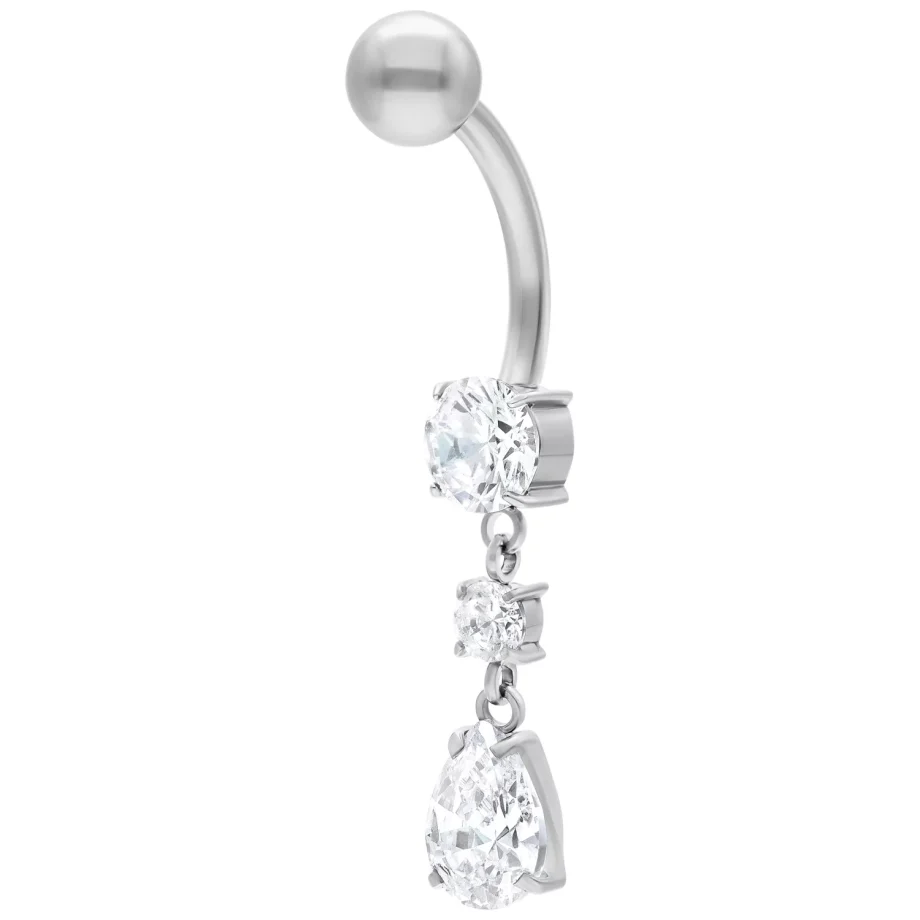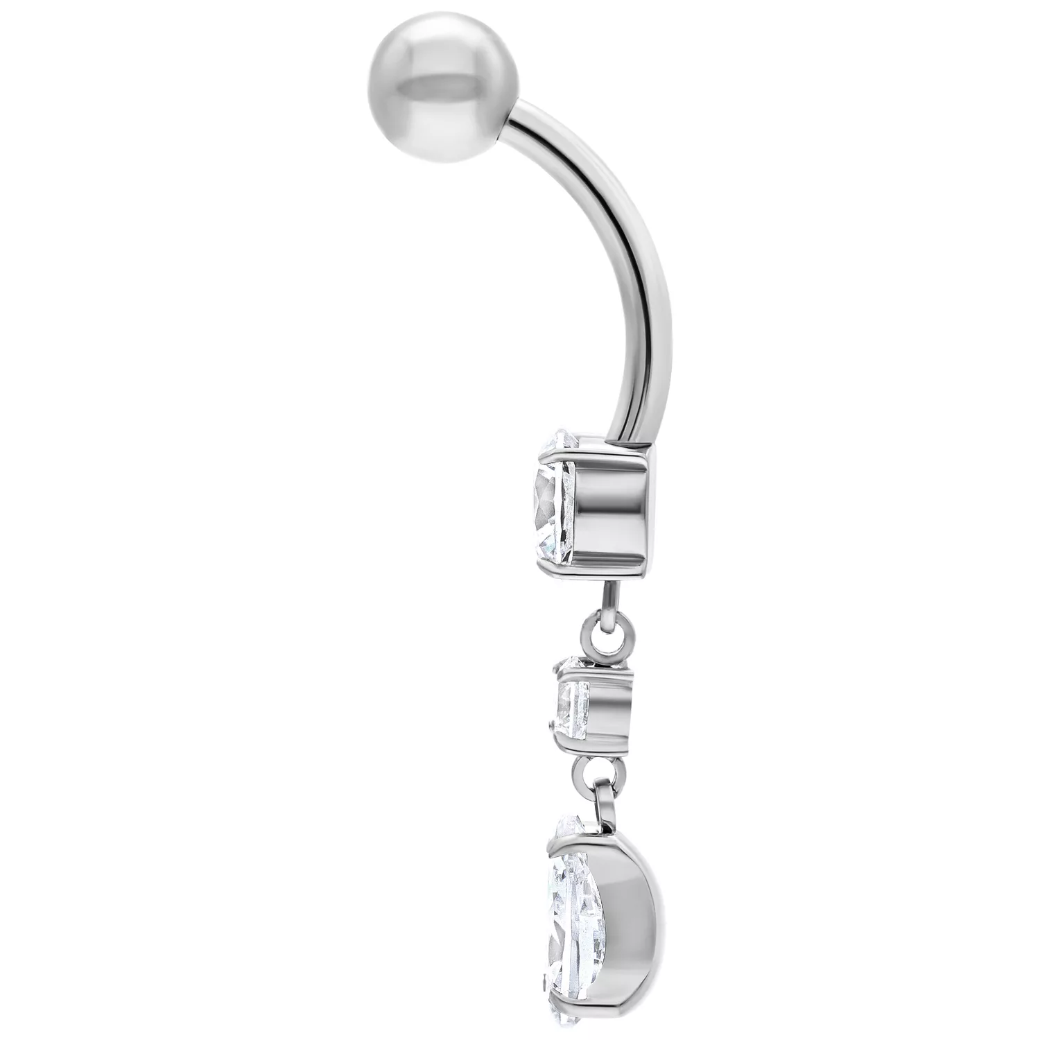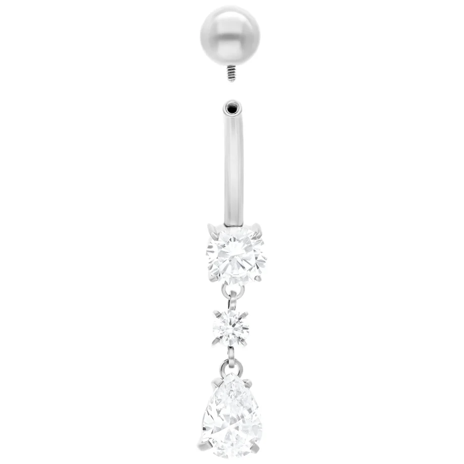 Titanium Internally Threaded Navel Curve With Crystal Teardrop Dangle